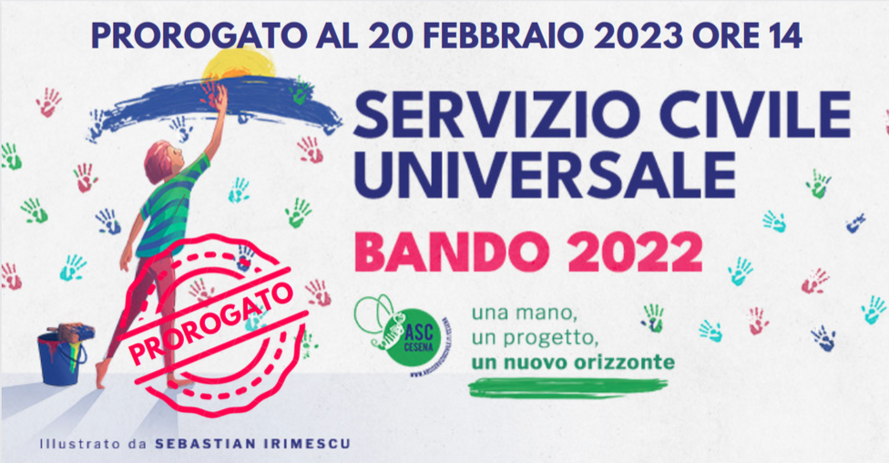 La scadenza del Bando di Servizio Civile Universale è stata prorogata a LUNEDÌ 20 FEBBRAIO alle ore 14:00