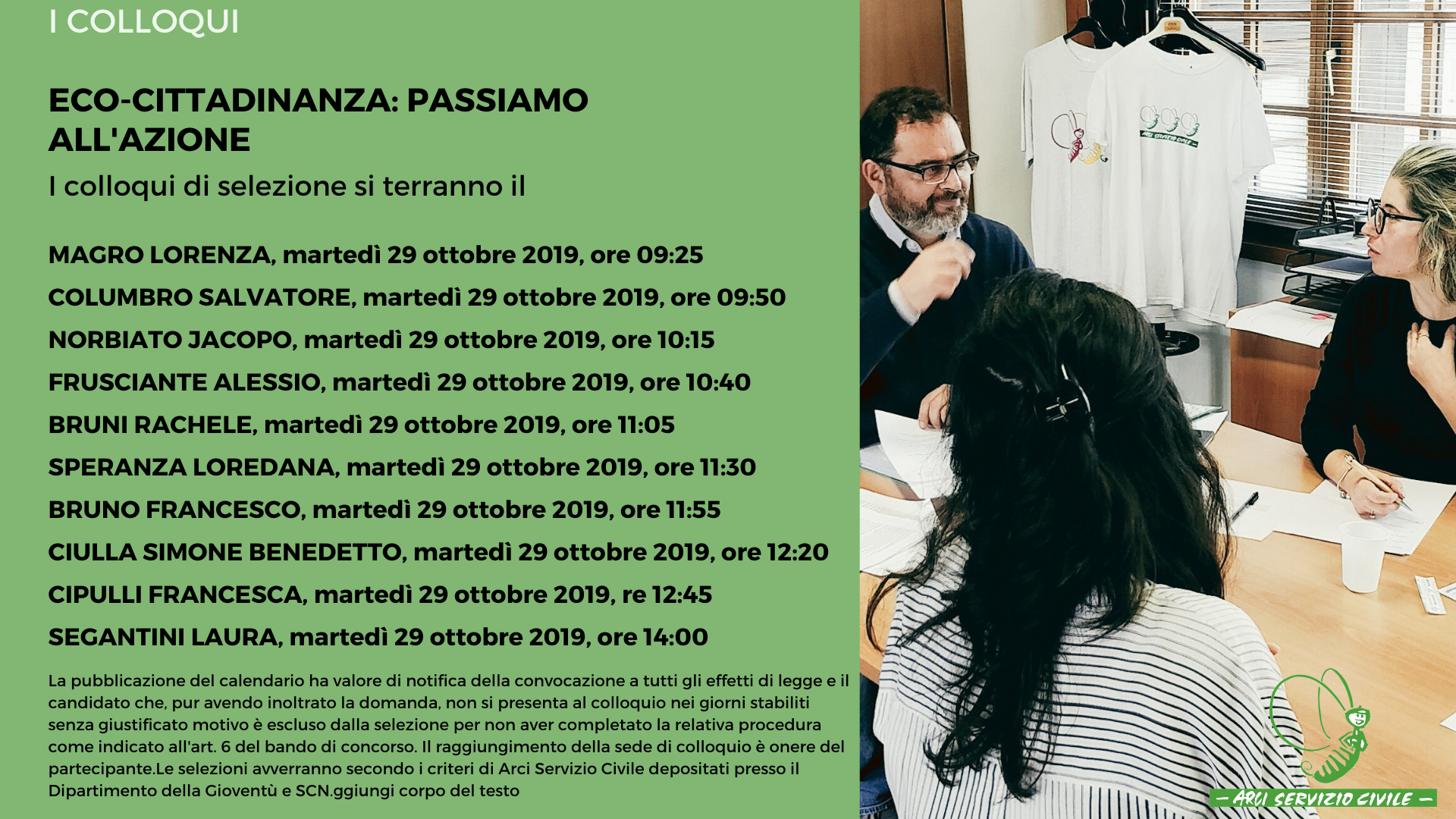 Calendario colloqui progetto in Belgio - ECO-CITTADINANZA: PASSIAMO ALL'AZIONE