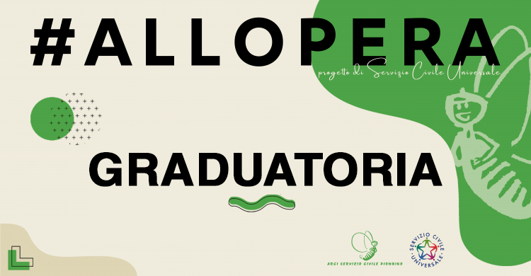 È disponibile la graduatoria provvisoria, definitiva al termine dei controlli del Dipartimento, del progetto di Servizio Civile Universale #ALLOPERA. I 5 ragazzi che sono rientrati tra i "selezionati", salvo comunicazione contraria del Dipartimento, possono considerarsi in servizio a partire dal 25/05/2021 e riceveranno ulteriori informazioni in vista dell'avvio tramite email.