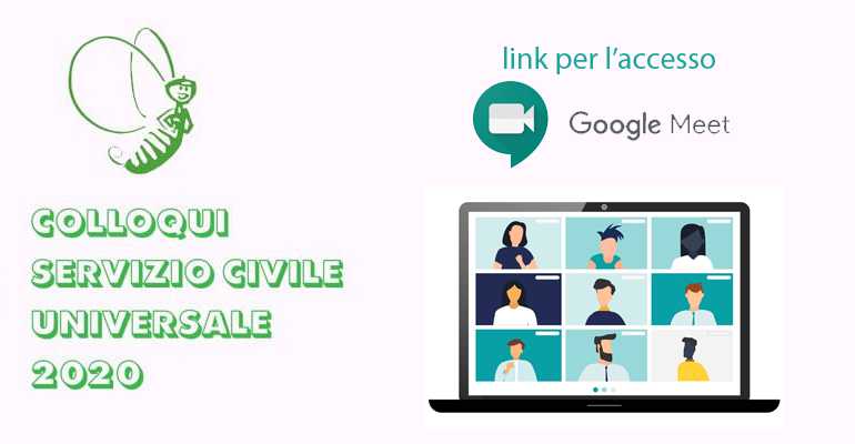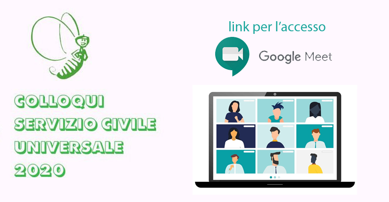 Per accedere ai colloqui del Servizio Civile Universale è necessario collegarsi alla riunione tramite Google Meet. Di seguito i link delle riunioni per ciascun progetto: