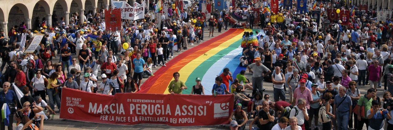 Una Marcia così non c’era mai stata in Italia. Processioni religiose sì, se ne vedevano tante, e anche cortei di partito, in tutte le regioni. Ma chiamare a raccolta gente di popolo, per camminare nelle campagne umbre con un obiettivo politico (lanciare l’idea del metodo nonviolento di lotta), era proprio una novità. Ci voleva uno come Aldo Capitini, pacifista nonviolento, libero religioso, per convocare la Marcia per la pace e la fratellanza tra i popoli del 24 settembre 1961.