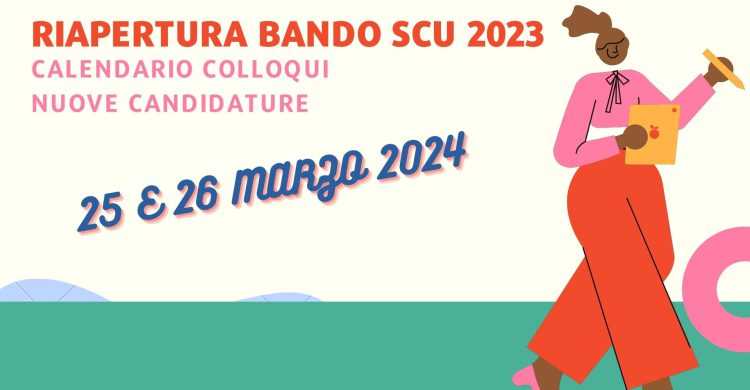 Di seguito pubblichiamo il calendario dei colloqui di selezione relativi alle NUOVE CANDIDATURE pervenute ad ASC Roma aps nel periodo di riapertura del Bando SCU del 22.12.2023 ( dall’11 al 14 marzo 2024) .