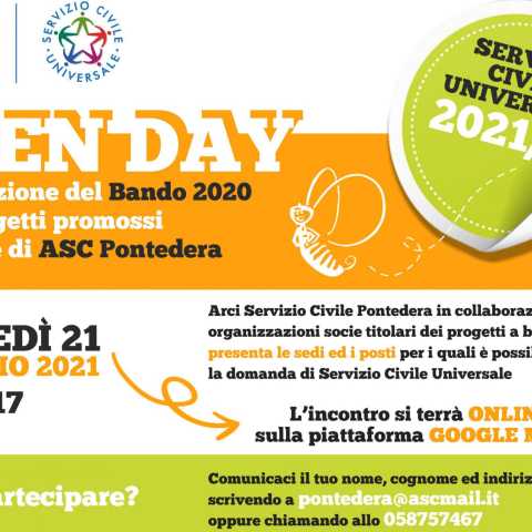 Il 25 Maggio hanno preso avvio i progetti che fanno parte dei programmi di S.C.U. a cui partecipa Arci Servizio Civile Pontedera Aps in collaborazione con altre sedi locali ASC del territorio toscano.