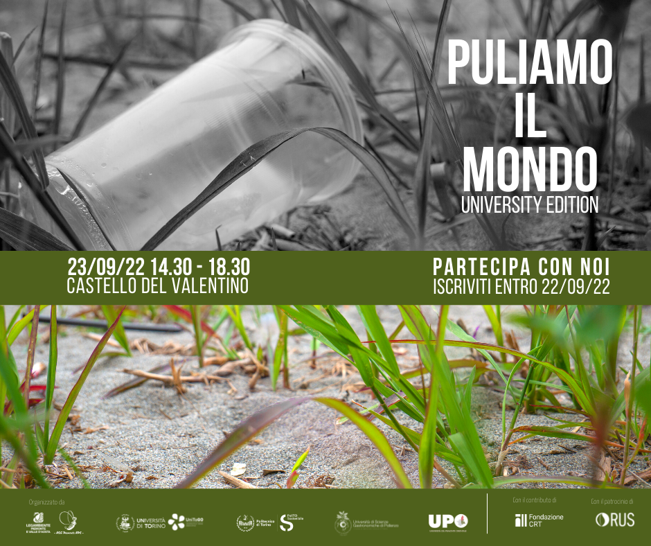 Venerdì 23 settembre dalle 14.30 si svolgerà “Puliamo il Mondo – University Edition”, l’attività di pulizia del Parco del Valentino.